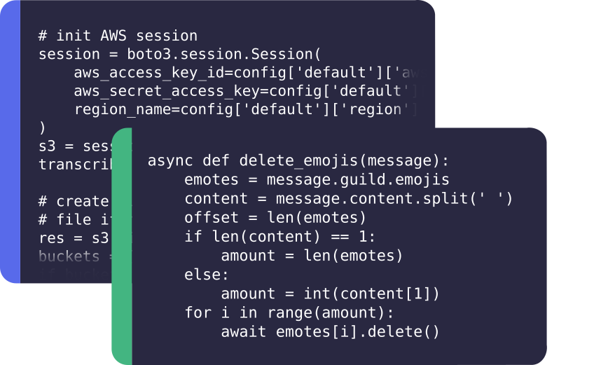 We have been developing with Python and JavaScript for over 6 years. During this time we have learnt a lot from our experiences and know exactly what our clients need. Our main goal is to write stable, maintainable, and performant code. examples of our work/what we can do for you, are available on our GitHub.